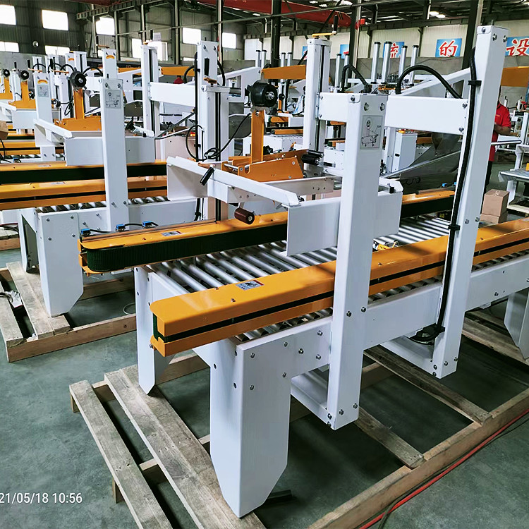 3、膠帶封箱機(jī)封箱后膠帶折角處呈現(xiàn)小尾巴,影響封箱漂亮度,是因?yàn)闄C(jī)器的滾輪調(diào)理得過,需將滾輪恰當(dāng)調(diào)高以到達(dá)好的封箱機(jī)作用。